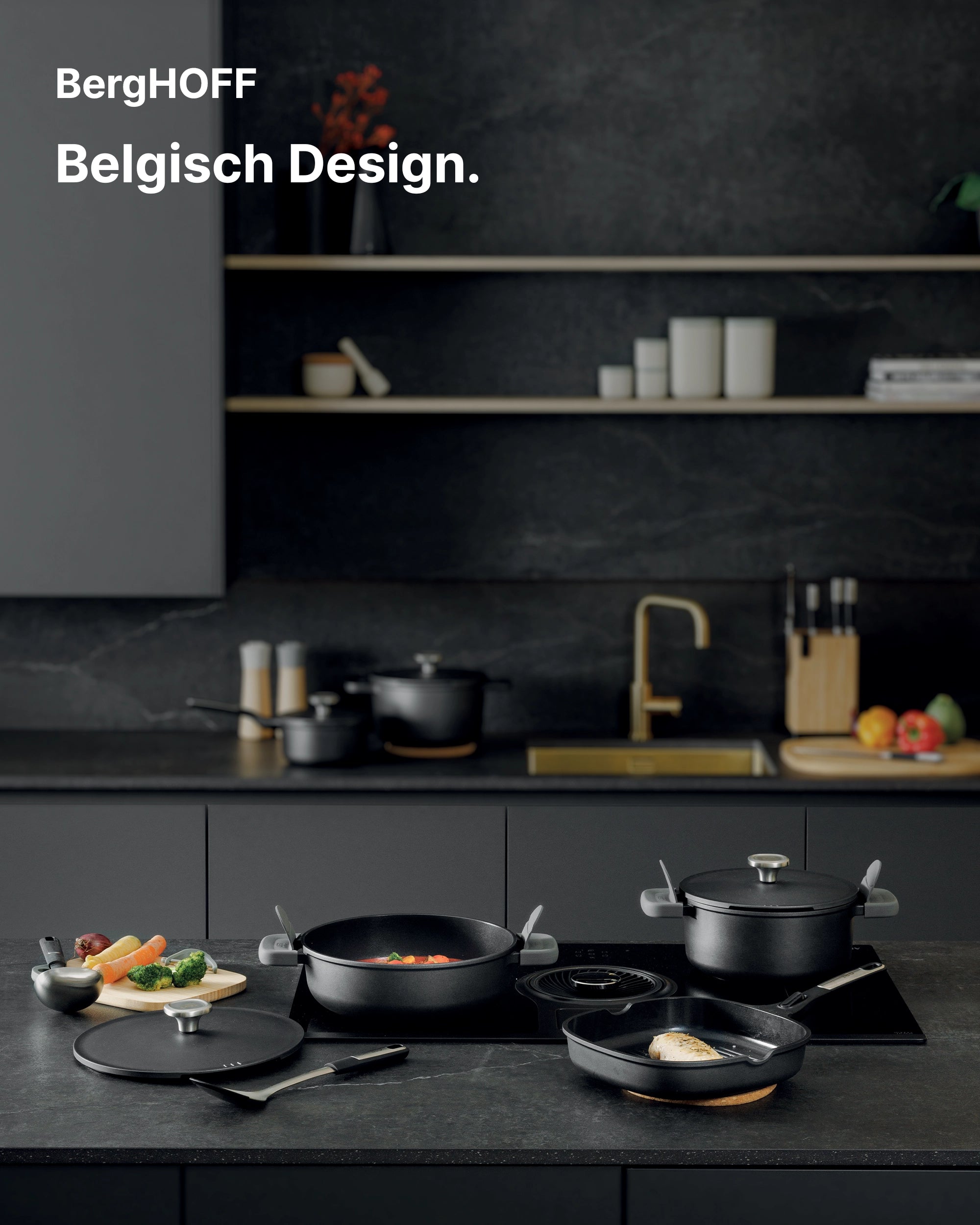 Je vous présente: BergHOFF. Dieses belgische Design verbindet französische élégance mit deutscher Gründlichkeit. Das Ergebnis sind preisgekrönte Produktdesigns mit innovativen Funktionen. Das Beste aus zwei Welten, mit einem starken Fokus auf Nachhaltigkeit.