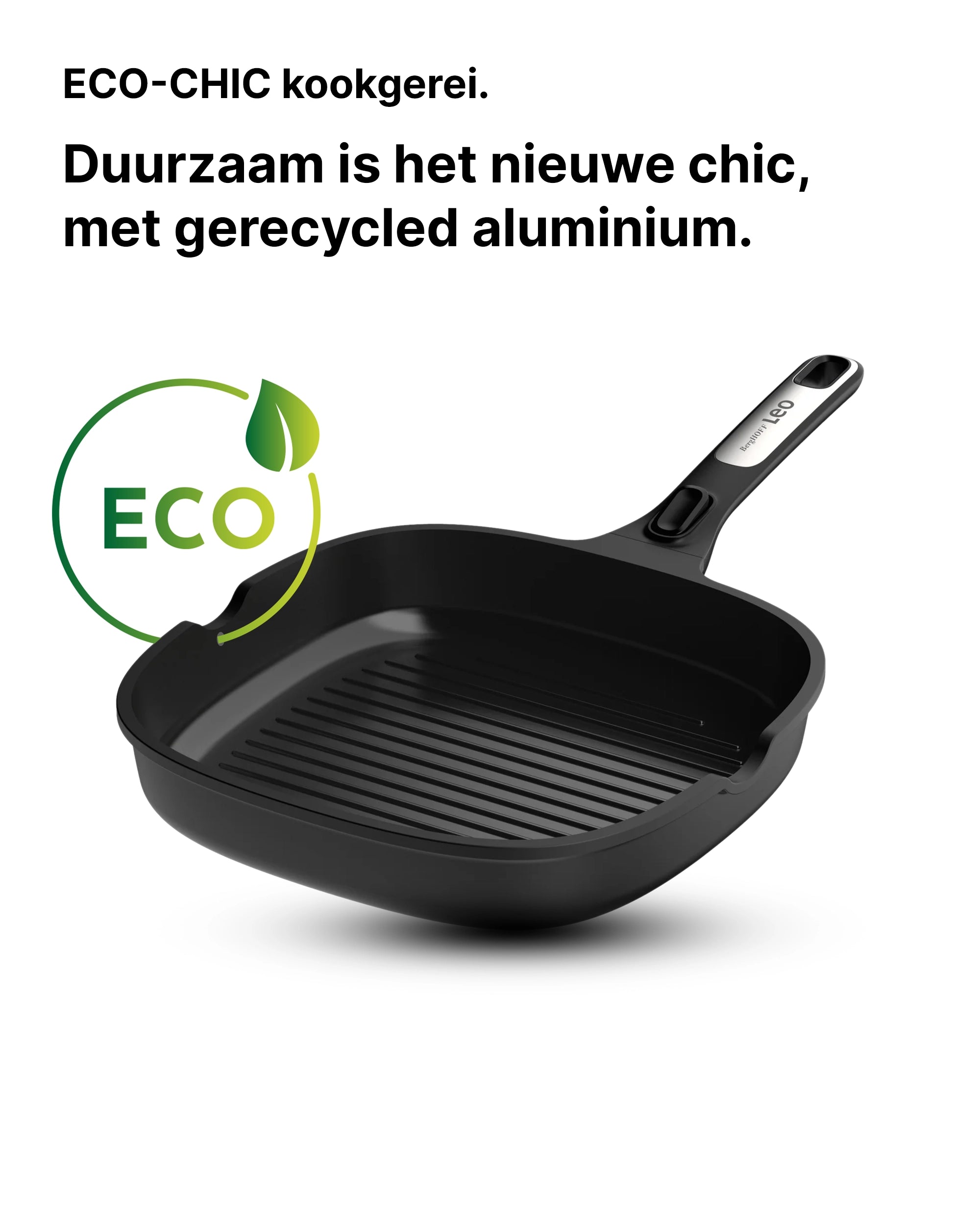 Dieses aus recyceltem Aluminium hergestellte Kochgeschirr verbindet Stil mit Nachhaltigkeit. Das hochwertige Material behält die gleiche Wärmeleitfähigkeit und Festigkeit wie neues Aluminium, allerdings mit einem deutlich geringeren ökologischen Fußabdruck. Entscheiden Sie sich für ECO-CHIC und erleben Sie, wie Nachhaltigkeit und Design nahtlos zusammenpassen, ohne Kompromisse bei Qualität und Leistung.